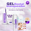 El V34 utiliza pigmentos violetas que equilibran el color de tus dientes, eliminando la apariencia de manchas y amarillamiento. Es seguro, rápido y no daña el esmalte.